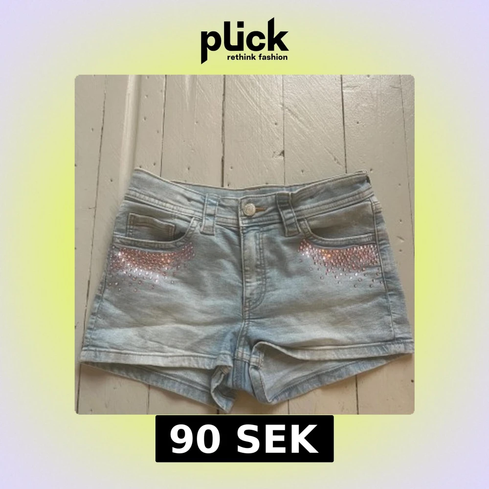 Snygga ljusblå jeansshorts med rosa paljettdetaljer💞