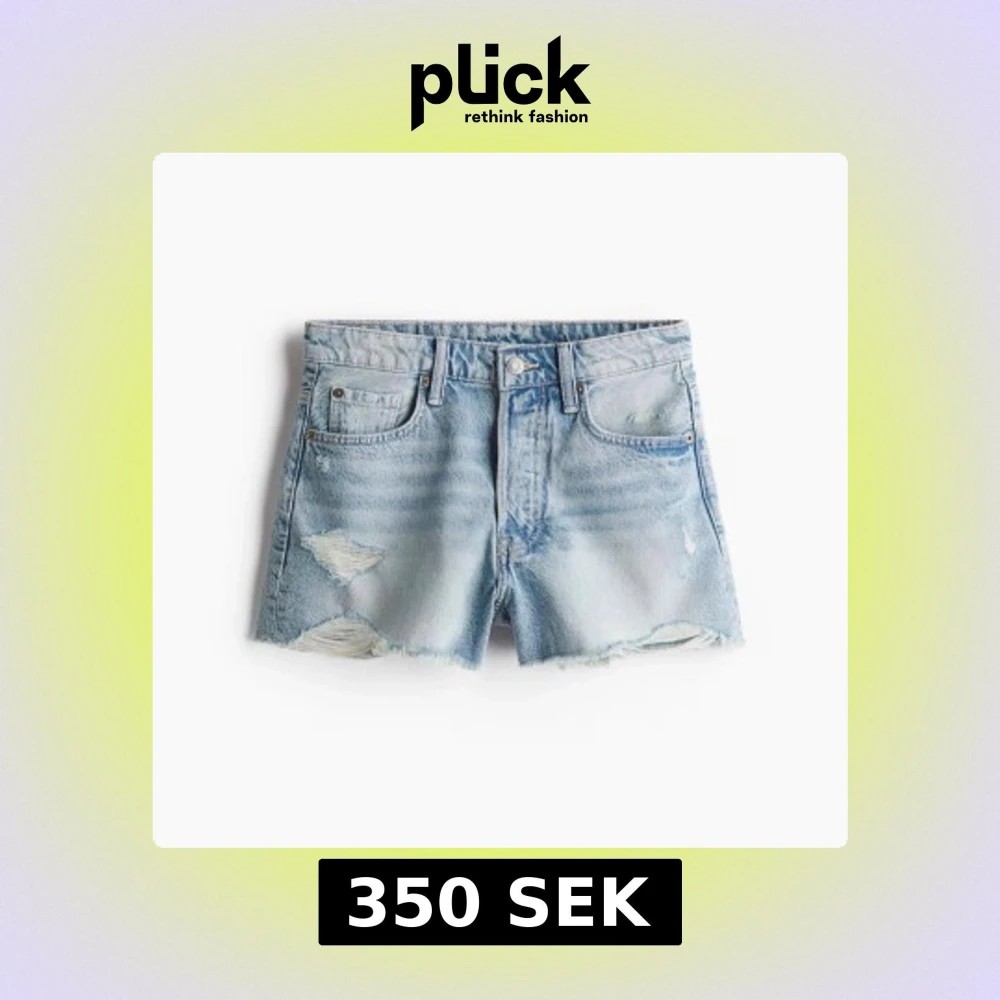 Säljer ett par ljusblå jeansshorts från H&M i klassisk femficksmodell. Shortsen har slitna detaljer, råa kanter och en avslappnad passform. Perfekta för varma dagar och ger en cool, avslappnad vibe.