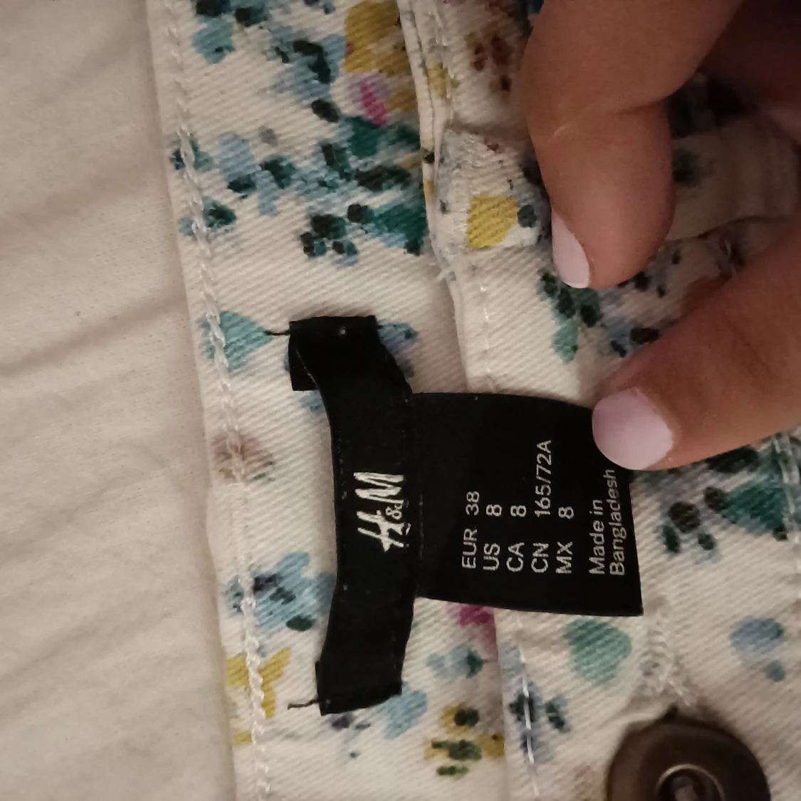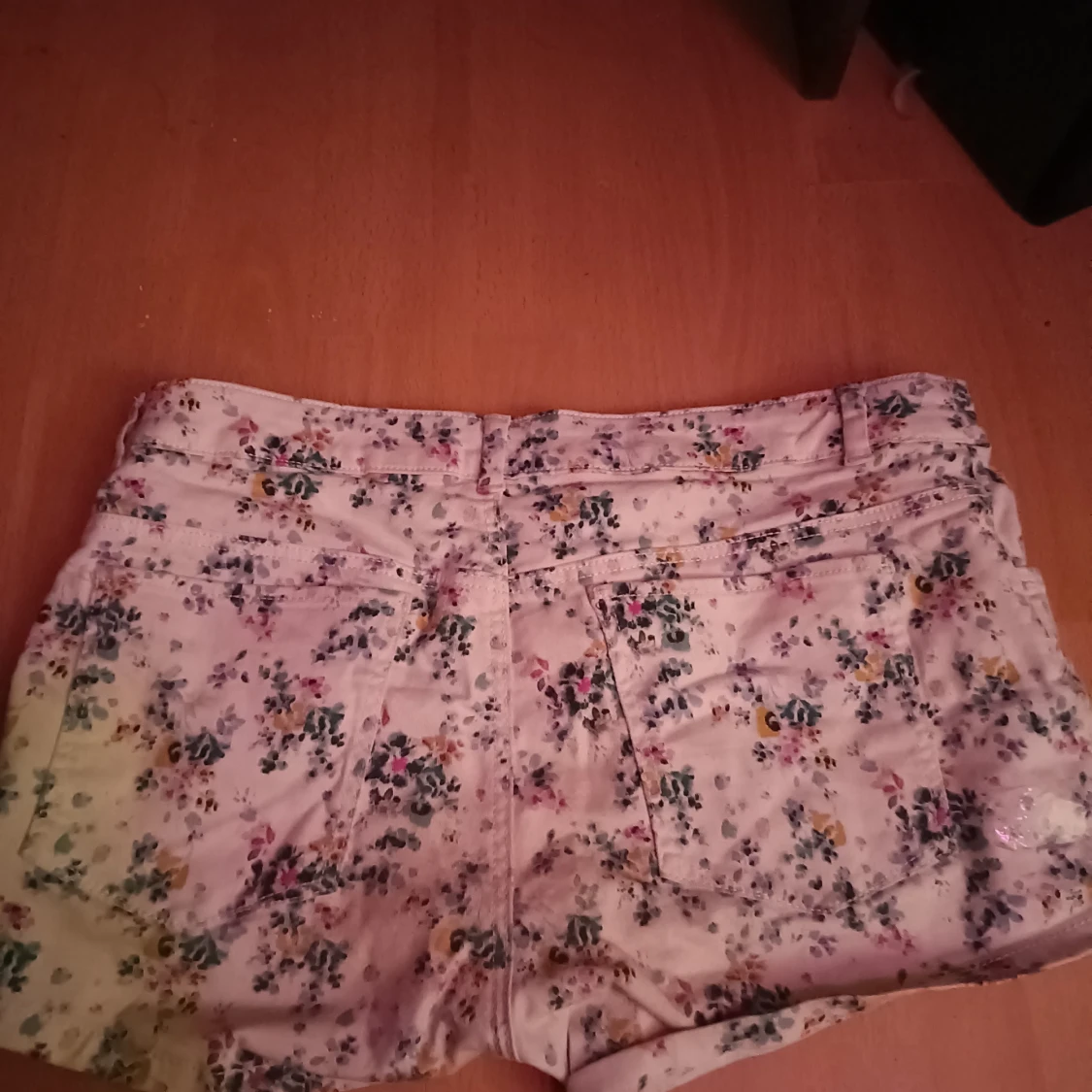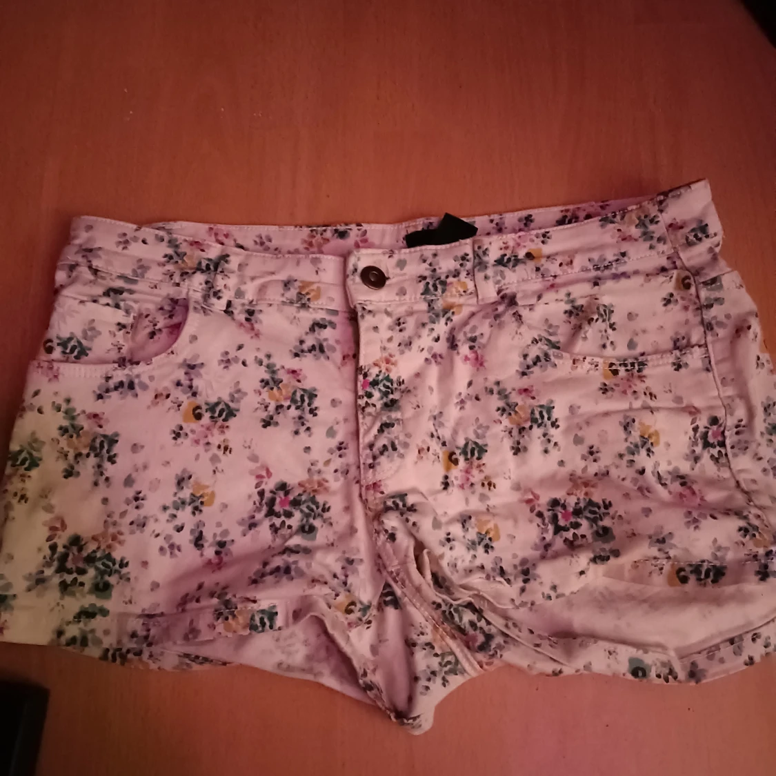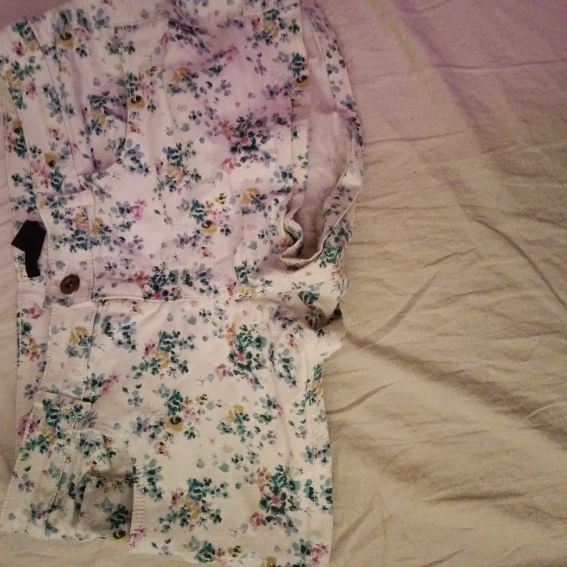 Säljer ett par söta blommiga shorts från H&M i storlek 38 och är vita med ett färgglatt blommönster