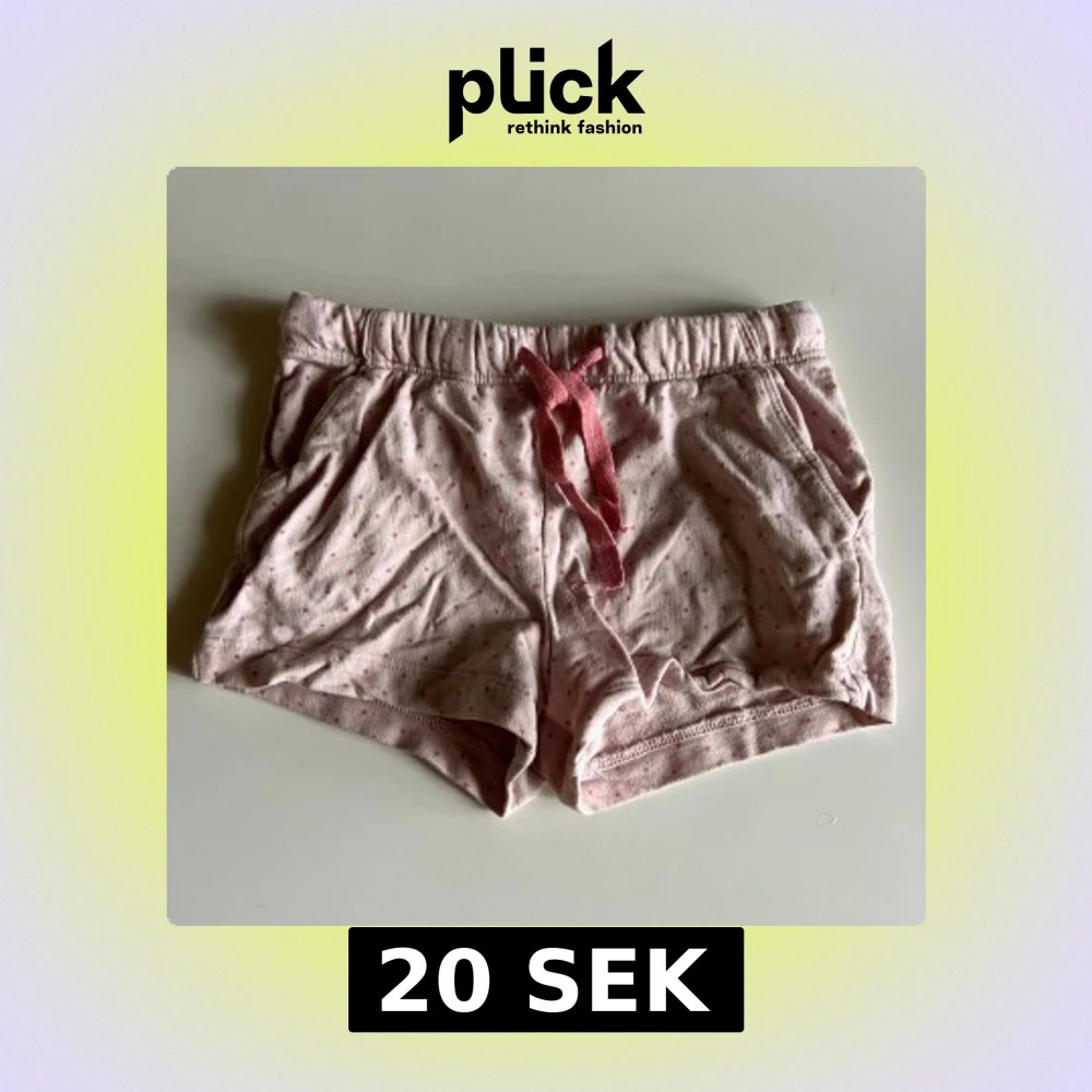 Söta ljusrosa shorts från H&M med små rosa prickar och en bred resår i midjan. De har en rosa snörning framtill och är gjorda i mjuk bomull, perfekta för varma dagar. Avslappnad passform och två fickor på sidorna.