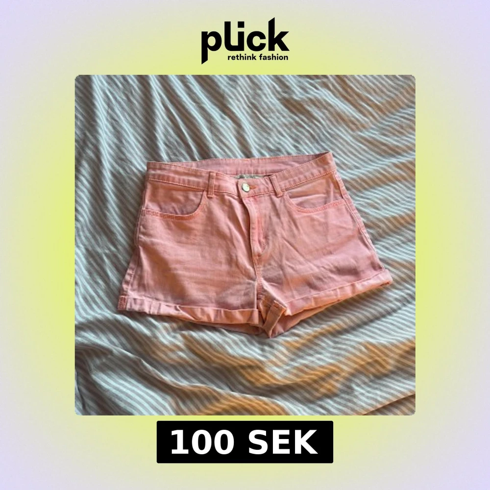 Säljer ett par ljusrosa jeansshorts från H&M med klassisk femficksdesign och uppvikta benslut. Shortsen har normal passform och stängs med knapp och dragkedja framtill. Perfekta för varma dagar!