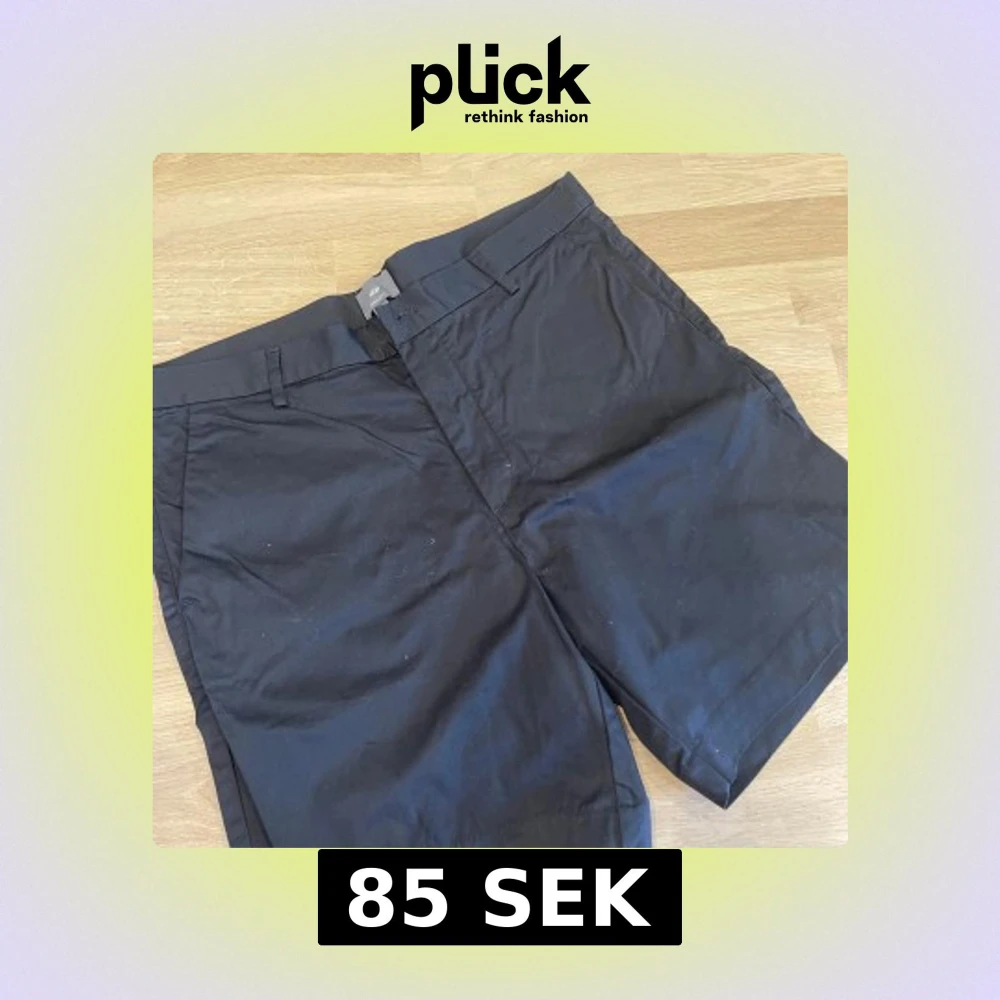 Svarta shorts från H&M i regular fit med klassisk design. De har bälteshällor, sidofickor och bakfickor med knapp. Perfekta för varma dagar och enkla att matcha med olika outfits.