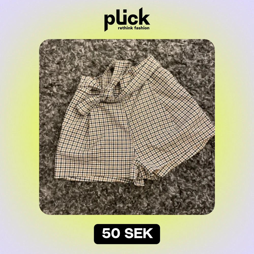 Fina kostym shorts med rutigt mönster. Resår i midjan och snören som kan knytas till en rosett både fram eller bak. Använda några gånger men finns inga tydliga märken på användning.
