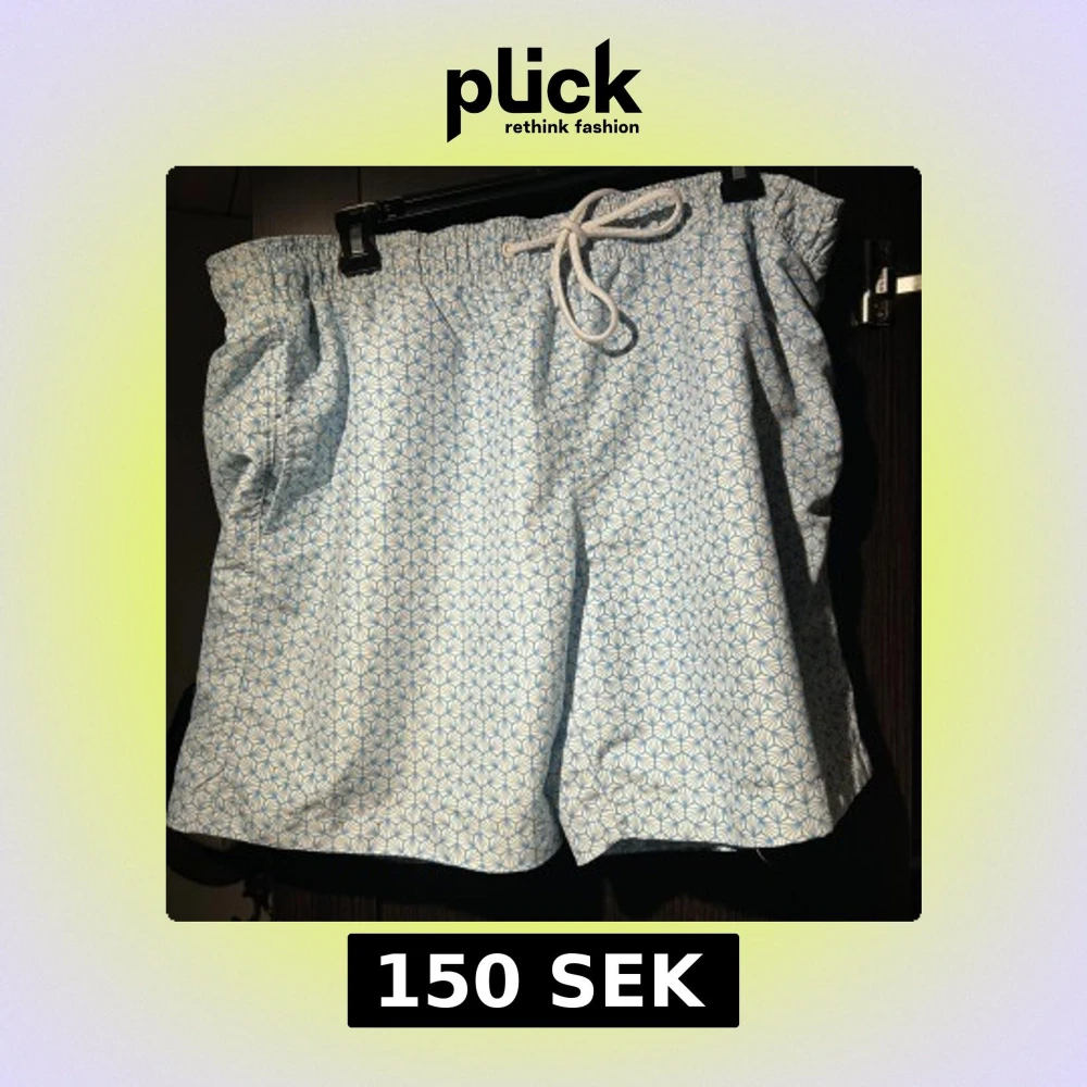 Shorts i ljusblått och vitt med geometriskt mönster. Materialet känns lätt och luftigt, perfekt för varma dagar. Fickor på sidorna och bak för extra funktion.