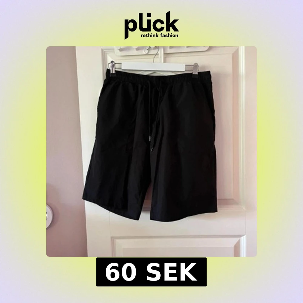 Svarta shorts med elastisk midja och snörning framtill. De har en enkel och clean look med rak passform och är perfekta för varma dagar. Materialet känns lätt och bekvämt, vilket gör dem grymma för chill eller aktivitet.