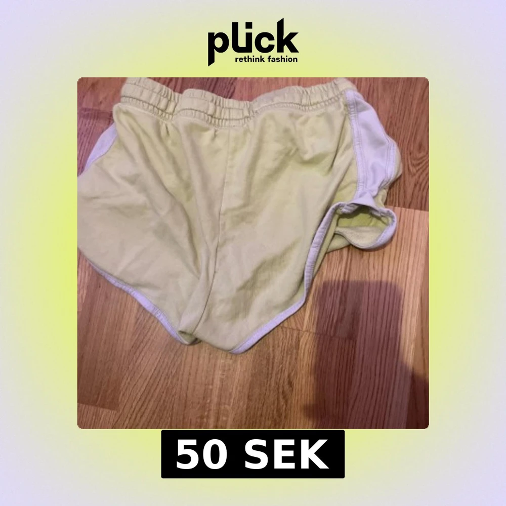 Snygga ljusgula shorts med vit kant och elastisk midja. Modellen är sportig med rundade ben och fickor på sidorna. Perfekta för varma dagar eller när du vill ha en chill och bekväm stil.
