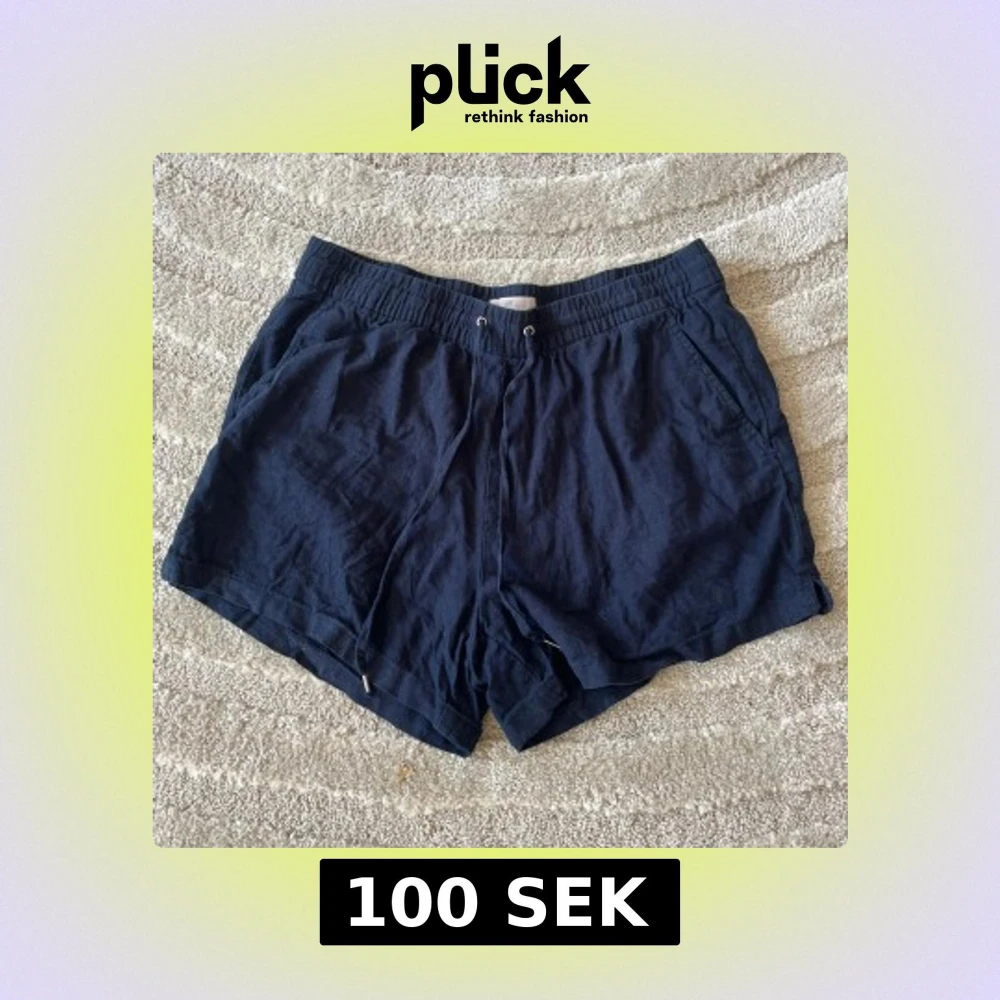 Snygga mörkblå shorts från H&M i luftig linnemix. De har elastisk midja med snörning, sidfickor och två bakfickor. Perfekta för varma dagar när du vill ha en chill och stilren look.