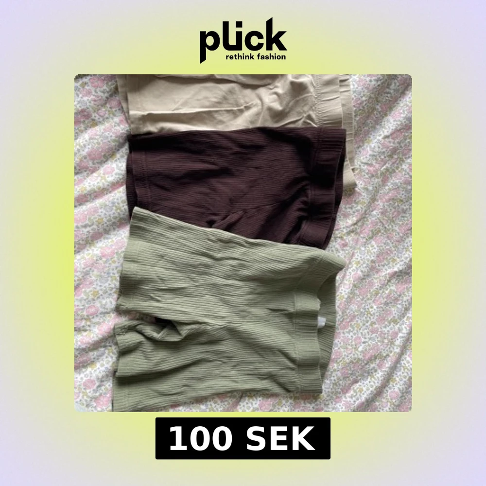 Tre par ribbade shorts från hm i färgerna beige, mörkbrun och ljusgrön. De har elastisk midja och är tillverkade i mjuk bomullsmix med stretch. 2 av dem är ribbade. Aldrig använda. Men bara en har lappen kvar.