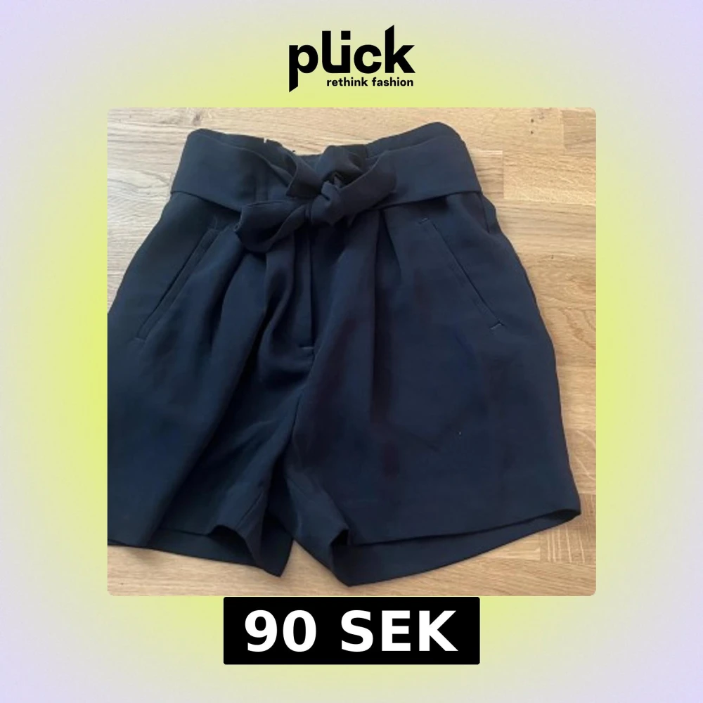 Stilrena svarta shorts från H&M med hög midja och knytband i midjan. Shortsen har två fickor fram och dekorativa fickor bak. Perfekta för en trendig och bekväm look.