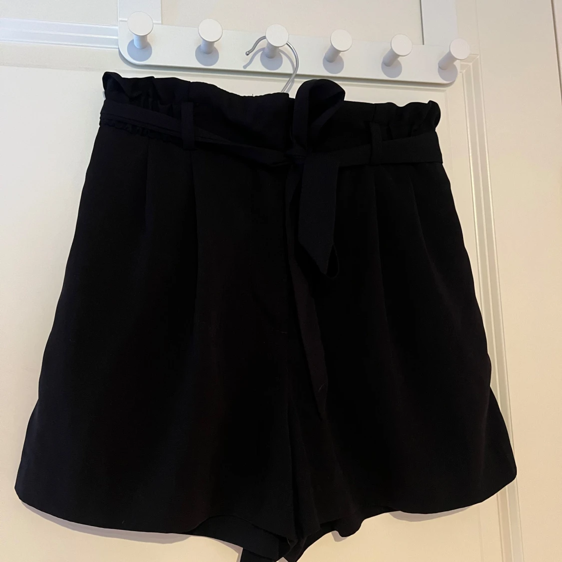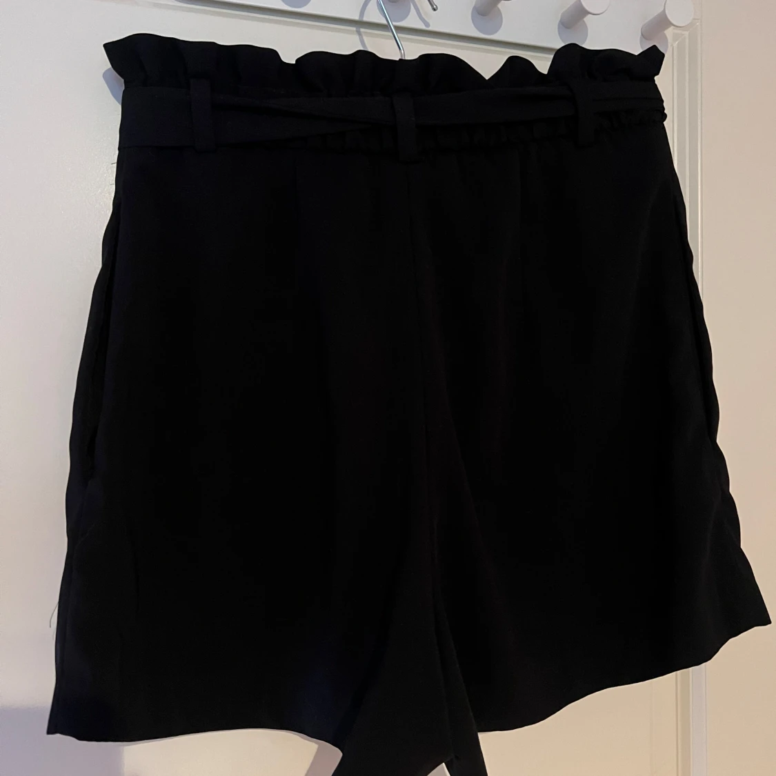 Snygga svarta shorts med hög midja och knytband i midjan. Perfekta för en stilren look. De har en lös passform och är tillverkade i ett mjukt material.