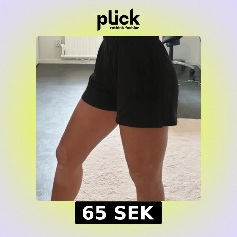 Svarta shorts med mudd i 100 % bomull från H&M. Medelhög midja och fickor. Storlek 170, passar även XS. Använda 1 gång.