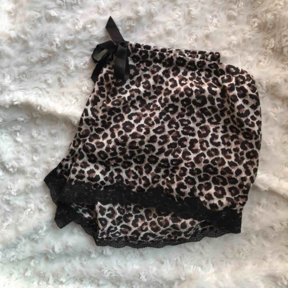 Jättefina leopardmönstrade pyjamasshorts från H&M i satin liknande tyg. Med dekorativ snörning fram och spetsdetaljer. Använda väldigt lite så i perfekt skick!