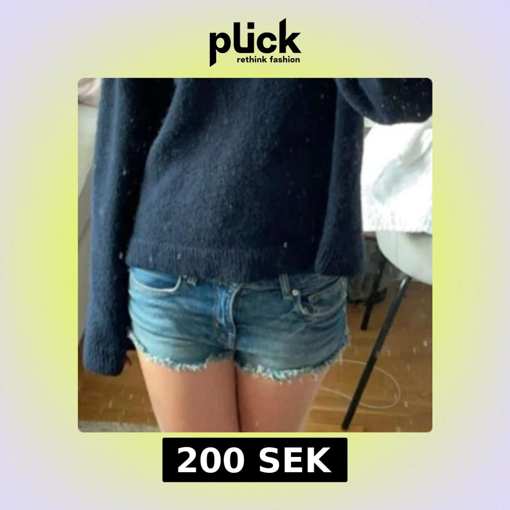 Snygga blå jeansshorts med låg midja och rå, fransig kant nertill.