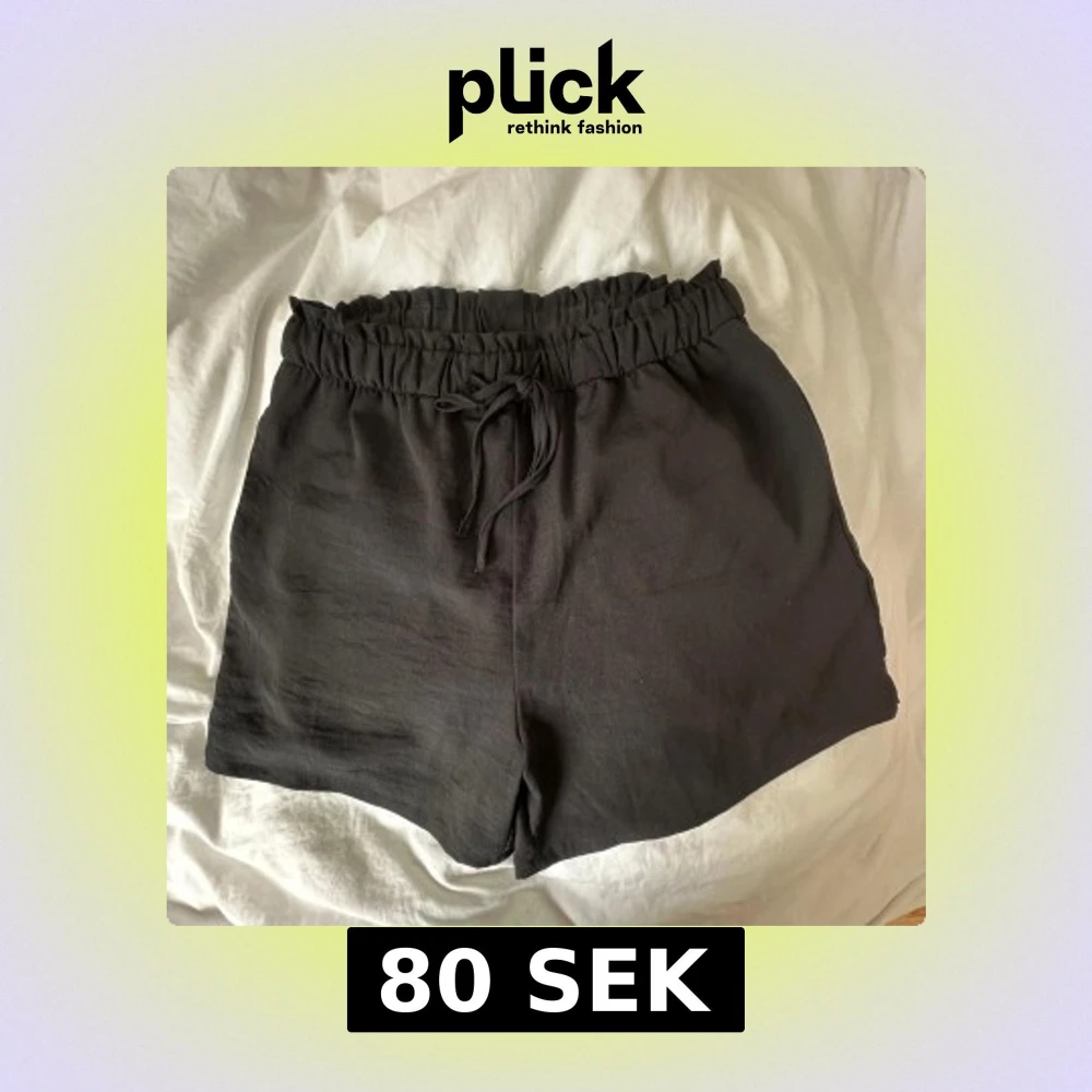 Svarta shorts med elastisk midja och snörning framtill. De har en avslappnad passform och är tillverkade i ett mjukt, lätt tyg som känns skönt mot huden. Perfekta för varma dagar eller när du bara vill chilla hemma