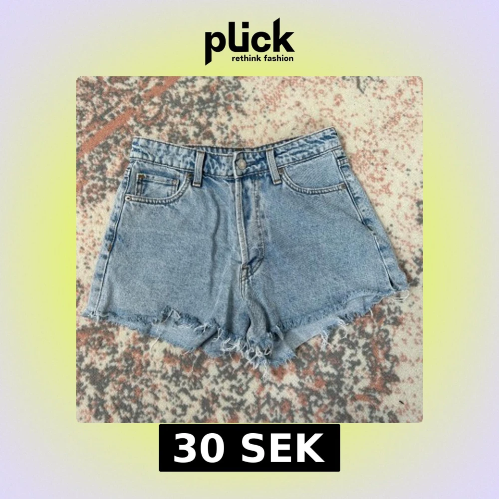 Snygga ljusblå jeansshorts från H&M med hög midja. Obs de har ett litet hål (syns på sista bilden)!