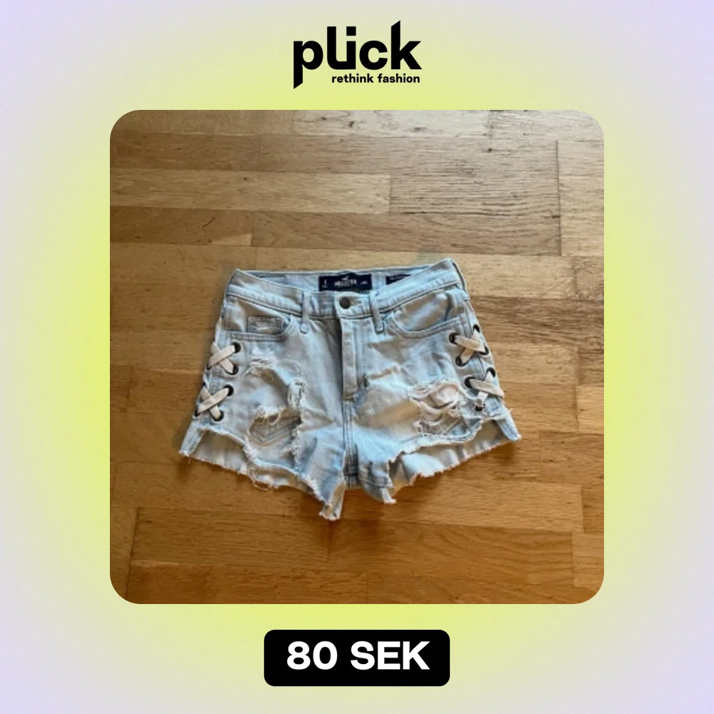 Jättesnygga shorts från hollister🙏Ljusblå med hål och kors på sidan. Skulle säga att dem är i storlek xs🤗