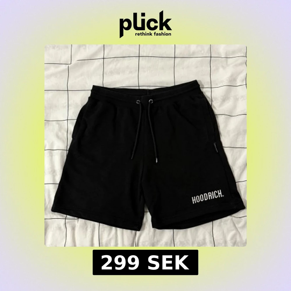 Svarta shorts från Hoodrich med vit logga på vänster ben. De har elastisk midja med snörning och två sidofickor. Tillverkade i en mjuk bomulls- och polyestermix som känns skön mot huden. Perfekta för chill dagar eller träning.