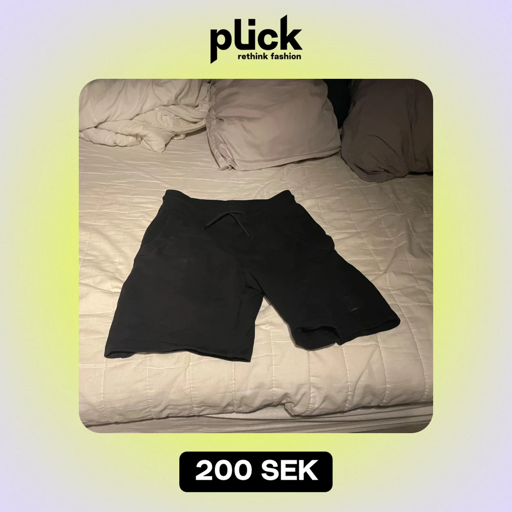 Säljer ett par svarta shorts i storlek XS. De är perfekta för en avslappnad dag eller träning. Shortsen har en enkel design med snörning i midjan för justerbar passform. Materialet känns mjukt och bekvämt. Hugo shorts köpta på paparazzi Malmö.