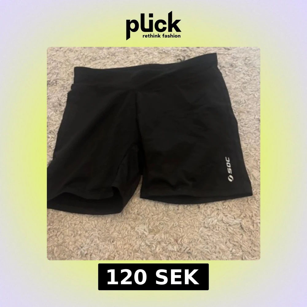 Säljer ett par svarta träningsshorts från SOC. De är perfekta för träning och har en bekväm passform. Shortsen är tillverkade i ett syntetmaterial som andas och håller dig sval under intensiva pass. Storlek 158-164