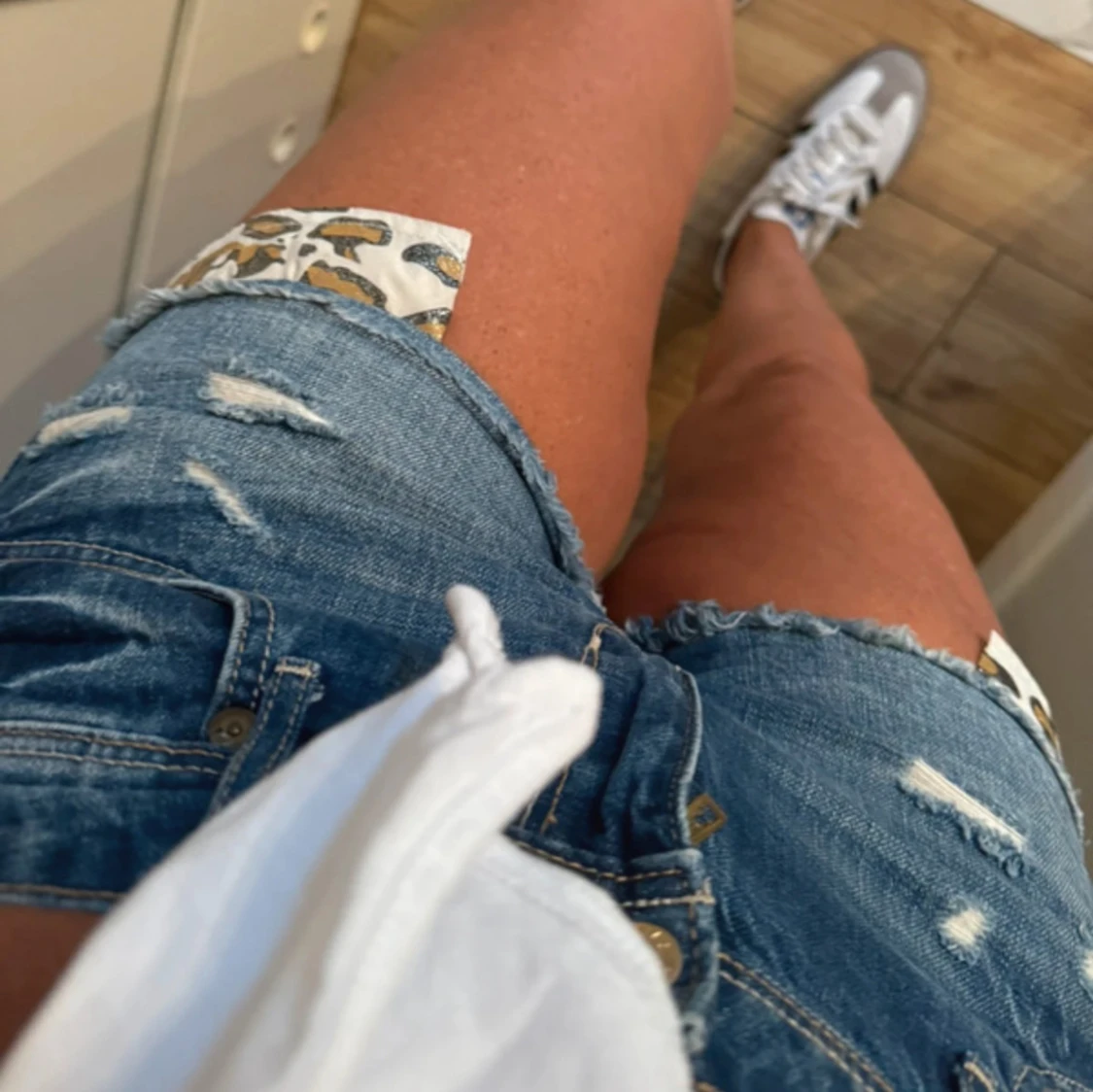 Säljer dessa jätte snygga jeans shortsen med leopard fickor pga att de är för stora för mig. Köpte dem på Sellpy, men är i som gott som nyskick. Bilderna är inte mina utan henne jag köpte dem av, kp för fler bilder!!