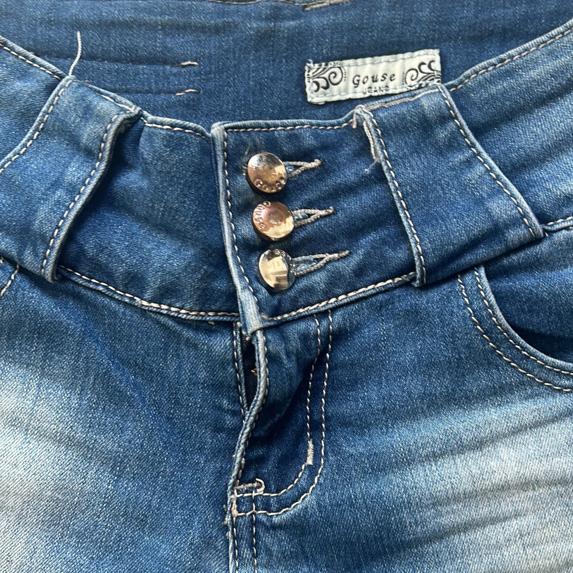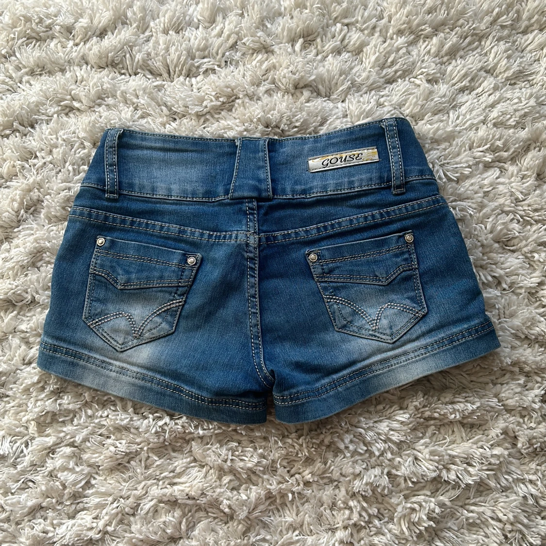 Snygga blå jeansshorts med tre knappar framtill och klassisk femficksdesign. Perfekta för en avslappnad sommarlook. De har en lätt slitning för en trendig touch.