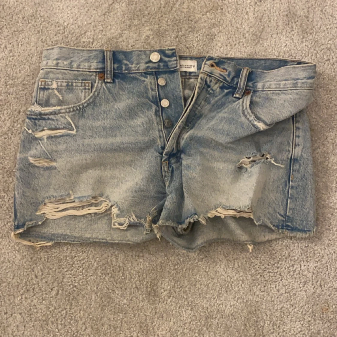 säljer mina skitsnygga jeansshorts ifrån zara! sparsamt använda och inga defekter❤️