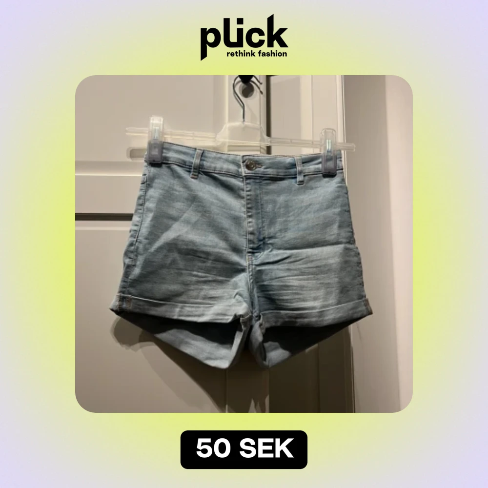 Ett par blå jeansshorts från Divided. Shortsen har en knapp och dragkedja framtill samt uppvikta benslut.