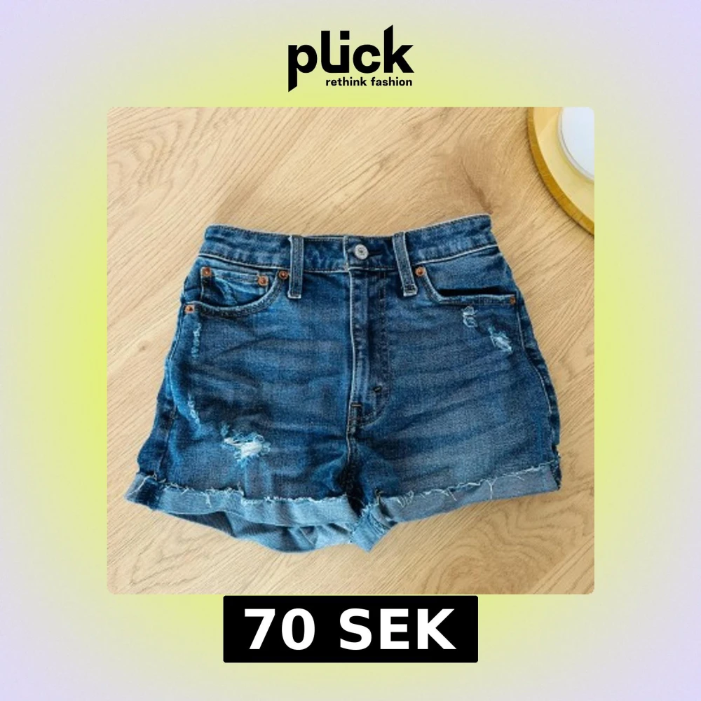 Snygga högmidjade jeansshorts från Abercrombie & Fitch i en klassisk blå denim. Shortsen har slitna detaljer och uppvikta kanter för en avslappnad look. Perfekta för varma sommardagar!