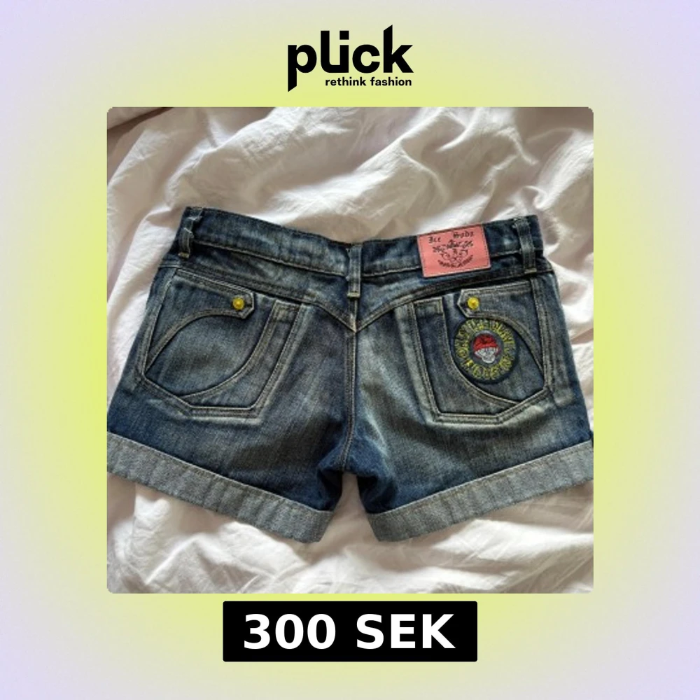 Snygga jeansshorts från Ice Soda i mörkblå denim med uppvikta benslut, coola spänndetaljer och broderad patch på bakfickan. Gula knappar och unika sömmar ger extra edge. Perfekta för en trendig sommarlook! PRIS KAN DISKUTERAS