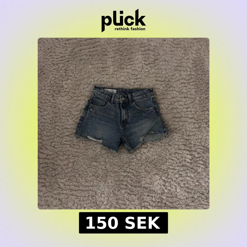 Snygga jeansshorts från Zara i en klassisk blå färg. De har fransiga kanter och slitna detaljer för en trendig look. Perfekta för sommarens alla äventyr!