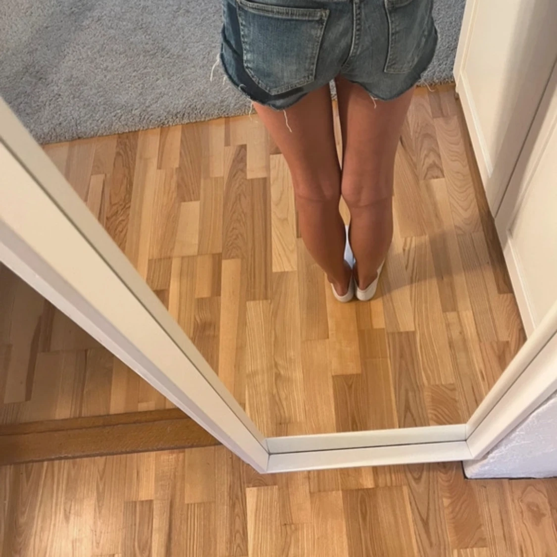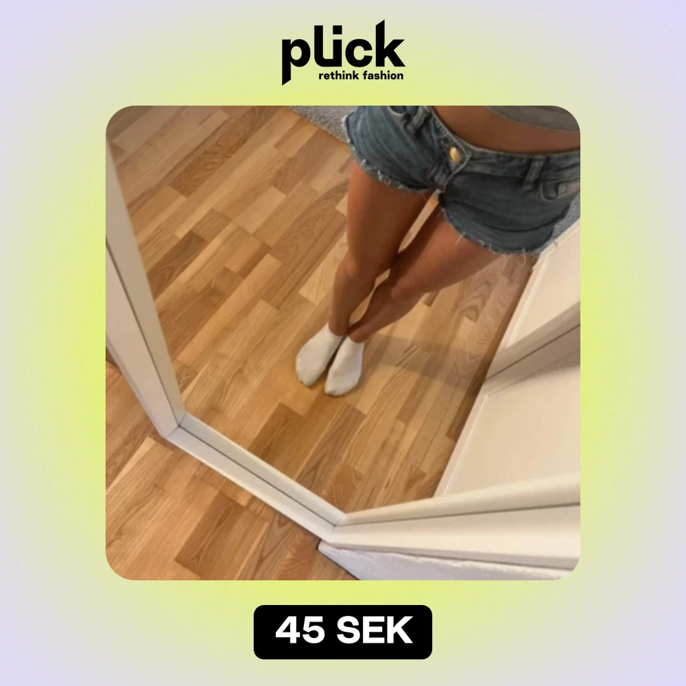 Säljer ett par snygga jeansshorts i blå denim. De är lågmidjade och har en klassisk femficksdesign. Perfekta för sommaren och passar både till stranden och en dag på stan. Shortsen har en knapp och dragkedja framtill.
