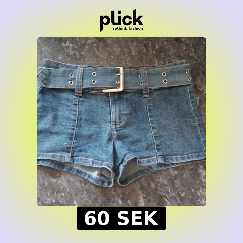 Snygga blå jeansshorts från H&M Divided med tillhörande brett bälte och silvriga metalldetaljer. Modellen är högmidjad och har klassiska sömmar och hällor. Perfekta för sommaren och ger en cool vibe till din outfit.