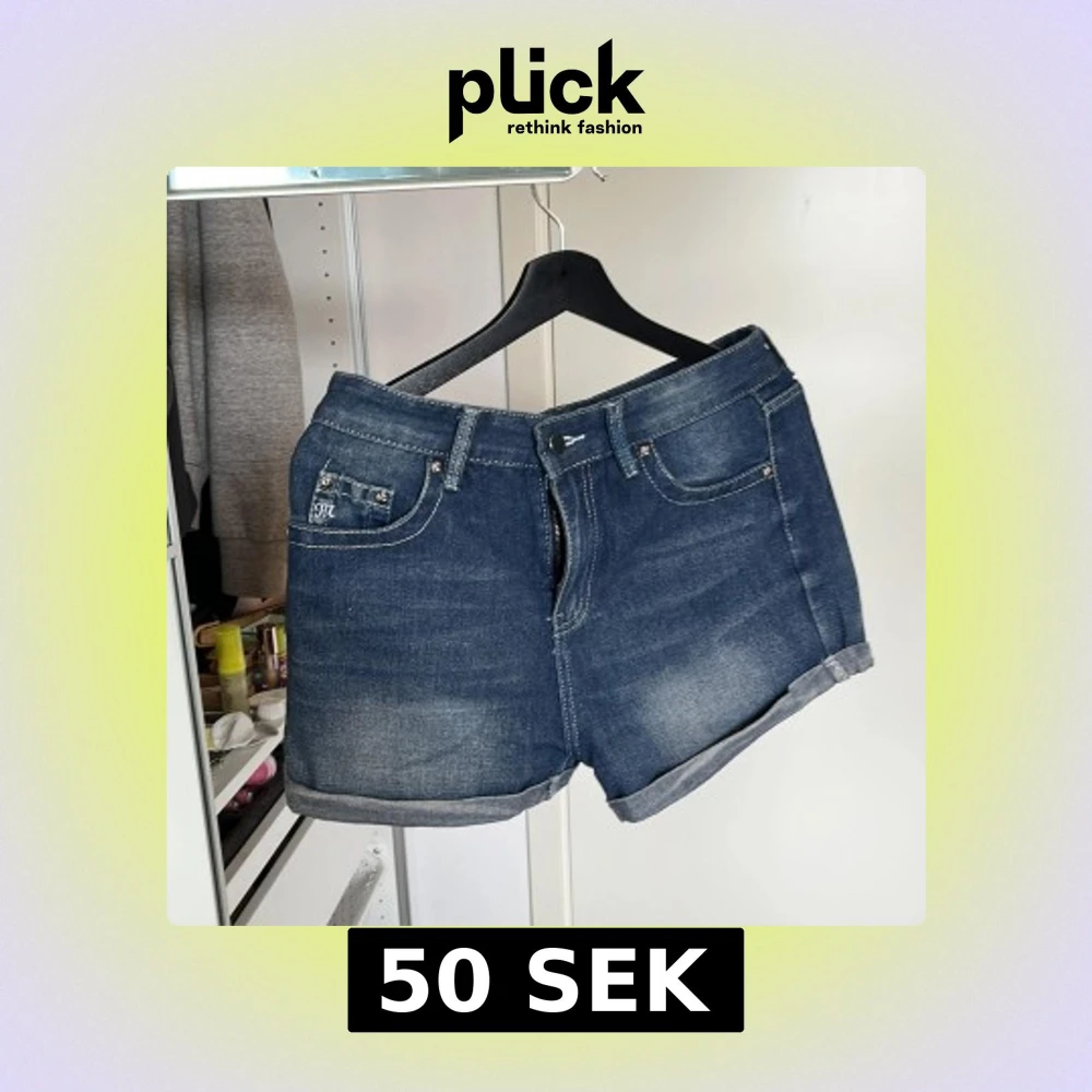 Mörkblå jeansshorts med uppvikta benslut och snygga broderade bakfickor dekorerade med paljetter. Klassisk femficksmodell med silverfärgade nitar och detaljer. Materialet är 85% bomull och 15% polyester, vilket gör dem både mjuka och slitstarka. FEJK MISS ME. DMa för mer info🩷
