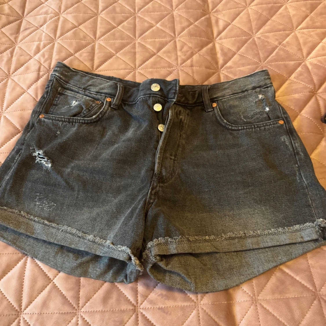 Snygga jeansshorts som har slitna detaljer och uppvikta benslut för en cool look. Perfekta till sommaren och enkla att matcha med olika toppar.