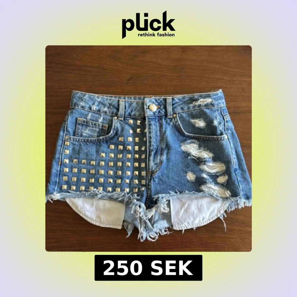 Snygga blå jeansshorts från Bik Bok med slitna detaljer och råa kanter. Perfekta för sommaren och festivaler. storlek S men passar även Xs.