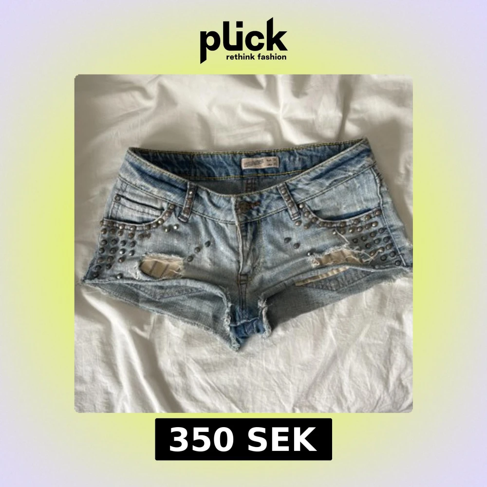 Snygga ljusblå jeansshorts från Pull&Bear med coola nitar och slitna detaljer. Perfekta för en avslappnad stil med en touch av edge. De har en låg midja och fransiga kanter som ger en trendig look. Säljer pågrund av att de är för små tyvärr!