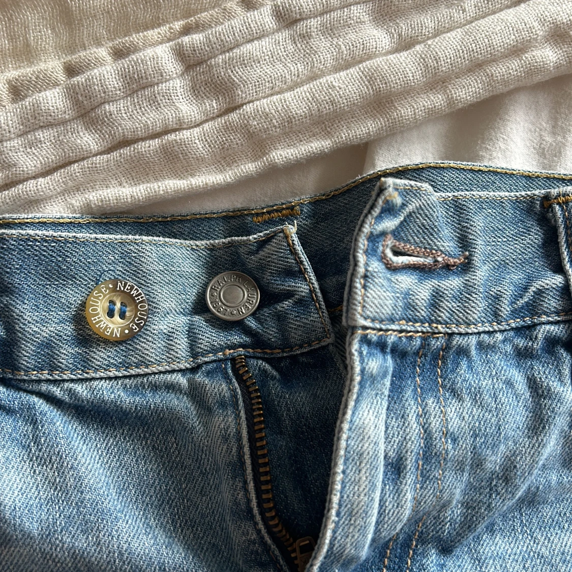 Köpta second hand, står ingen storlek i dom men skulle säga att de är som en 34/36 💕 har sytt på en extra knapp om man vill ha de tajtare i midjan också!
