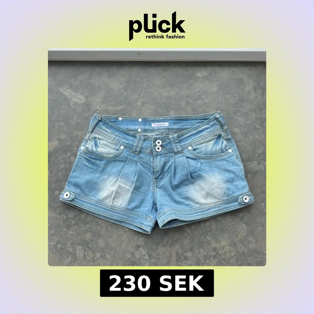 Så himla coola jeansshorts med coola detalijer. Tyvärr finns ingen bild på då de inte passar mig. Midjemått: ca 39-40 cm midjehöjd: ca 19 cm . Svårt att uppskatta en exakt storlek men kolla på måtten. 💕