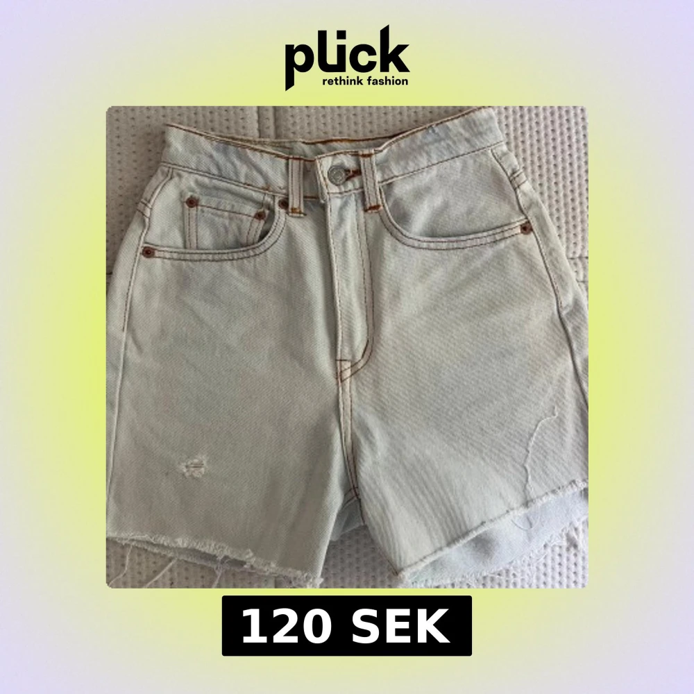 Snygga ljusa jeansshorts från Levi's I bra skick. Shortsen har råa, fransiga benslut och slitning framtill för en cool vibe. 31 cm midja. Perfekta för sommaren!