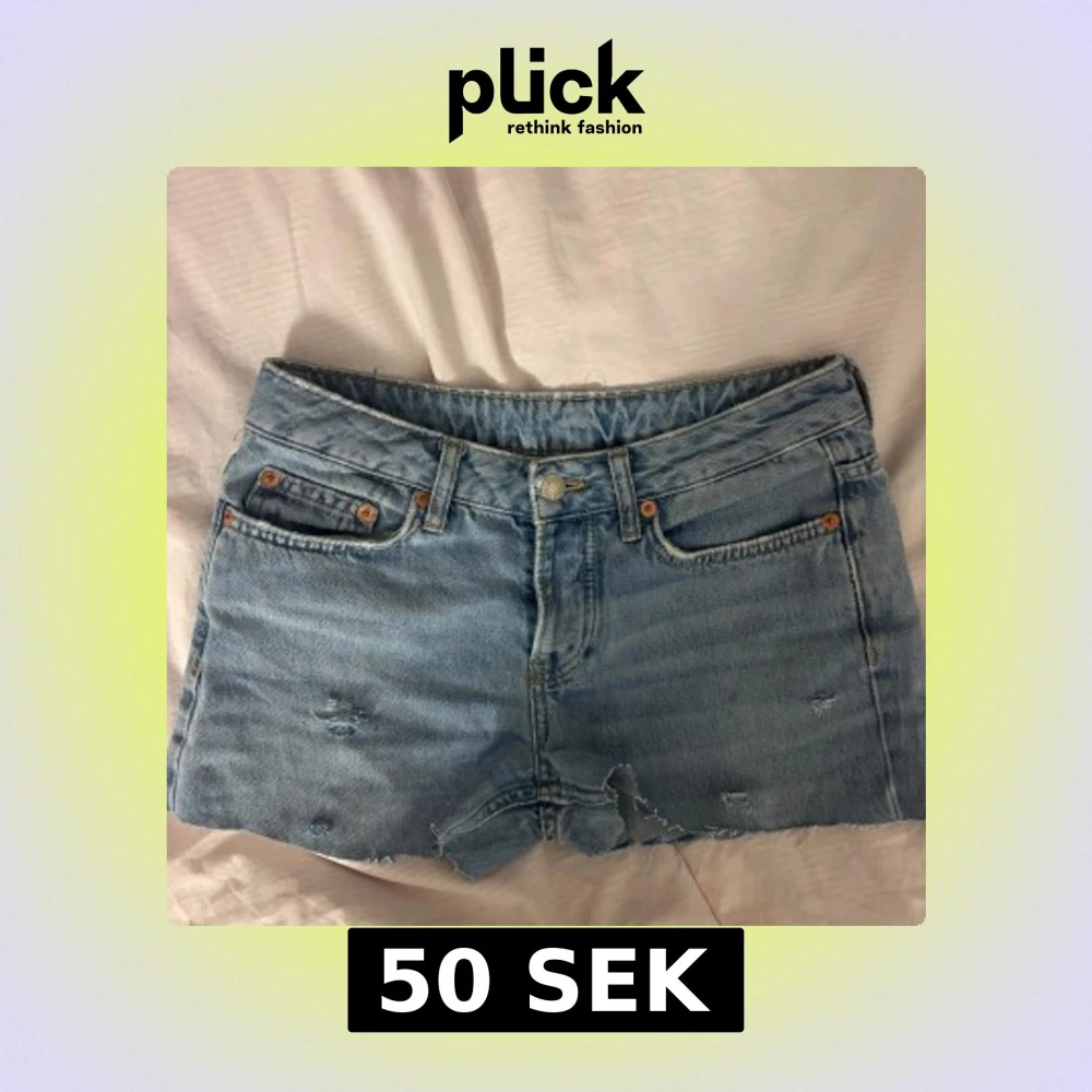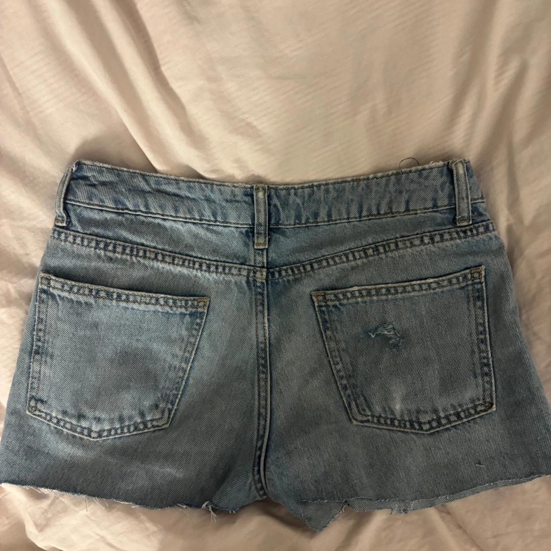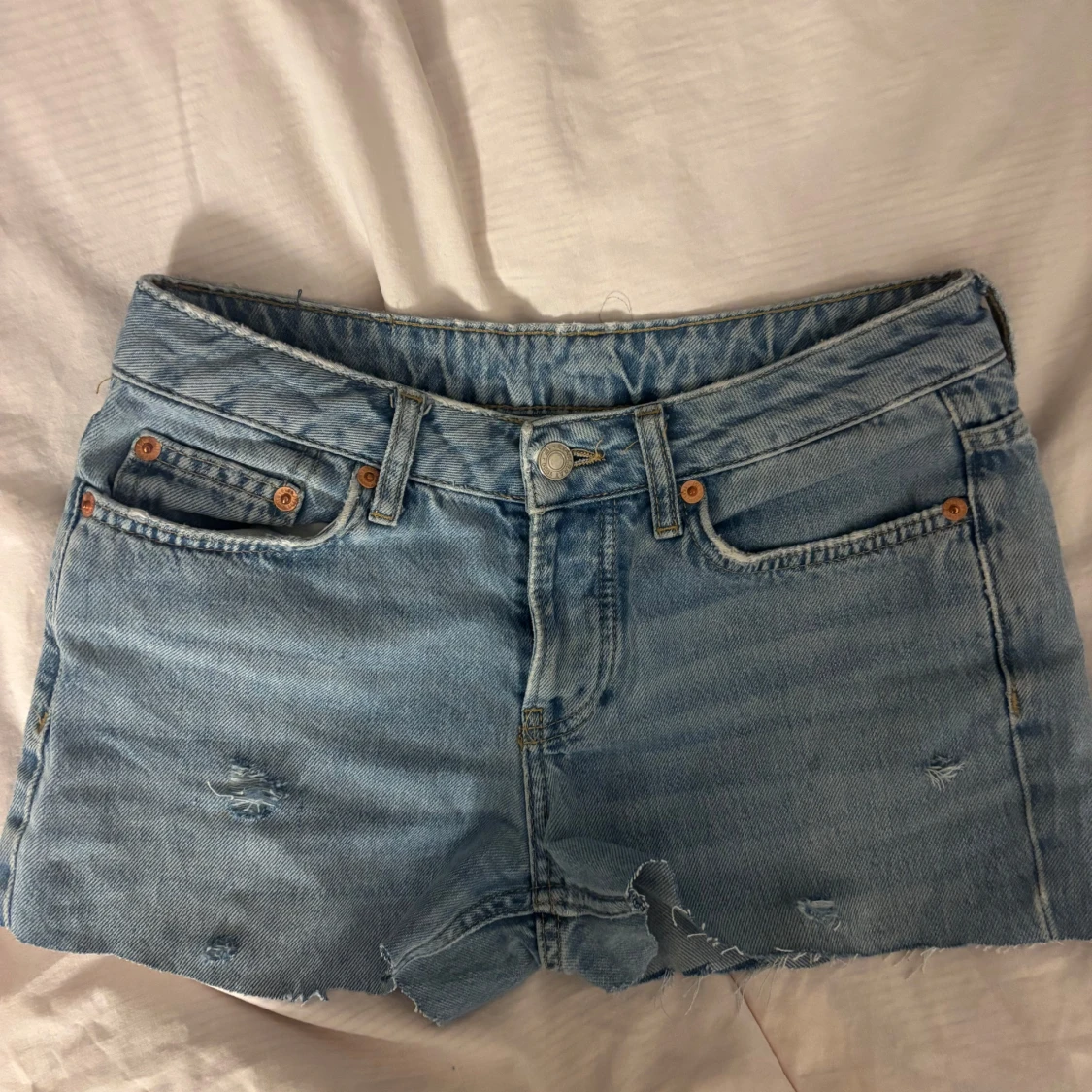 mid/lowwaist jeansshorts med slitningar som inte kommer till användning