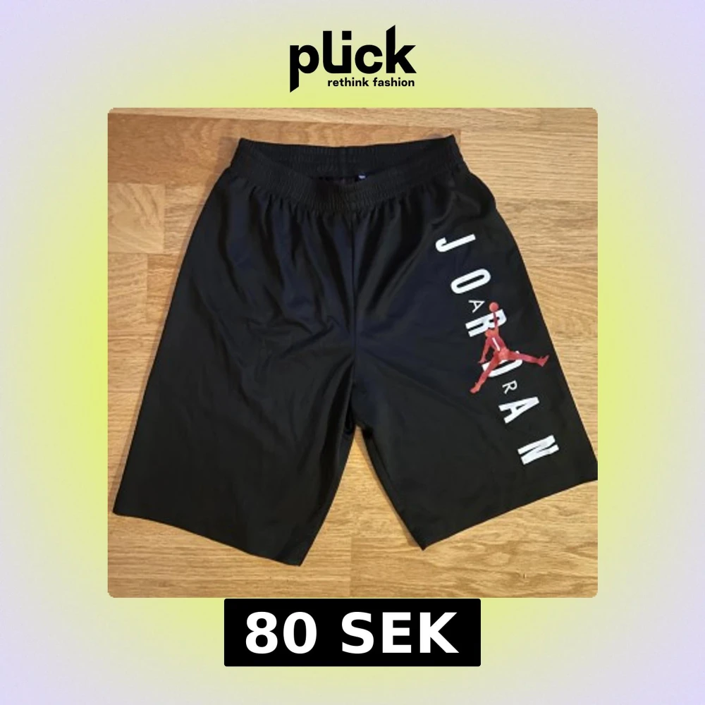 Snygga svarta shorts från Jordan med elastisk midja och stort tryck längs benet. Perfekta för sport, lätt och bekvämt material. ( Barn stolenXL)