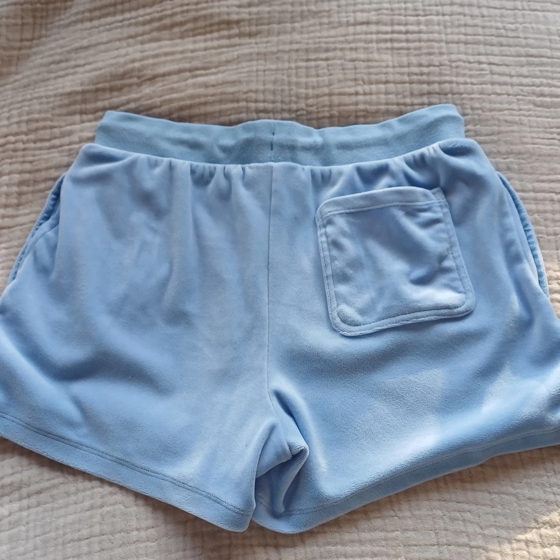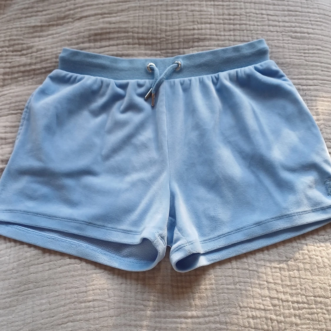 Jätte söta Juicy Couture shorts i ljusblått🩵 Jag säljer då dom inte riktigt passade mig, nästan helt oanvända. Dom är lite stora i storleken så jag skulle säga att dom som har medium skulle passa i dessa.🩵