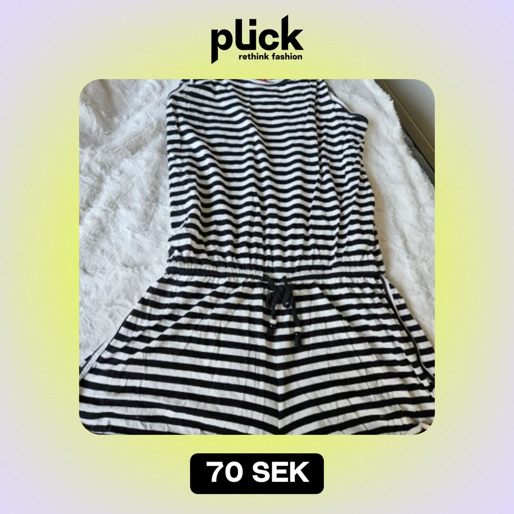 Söt randig jumpsuit.Perfekt för sommarfesten eller en avslappnad dag på stranden. Katt finns I hemmet