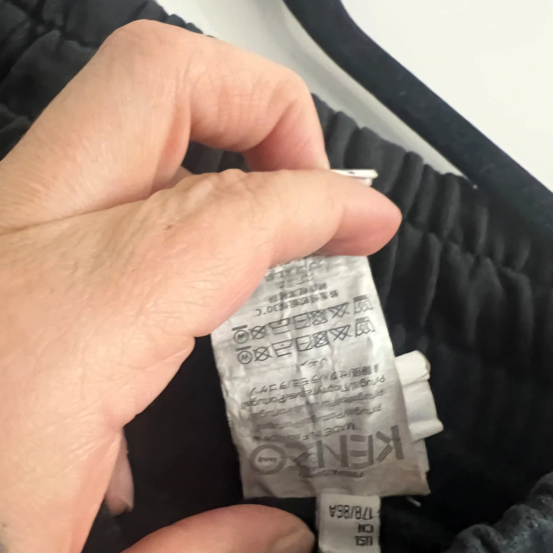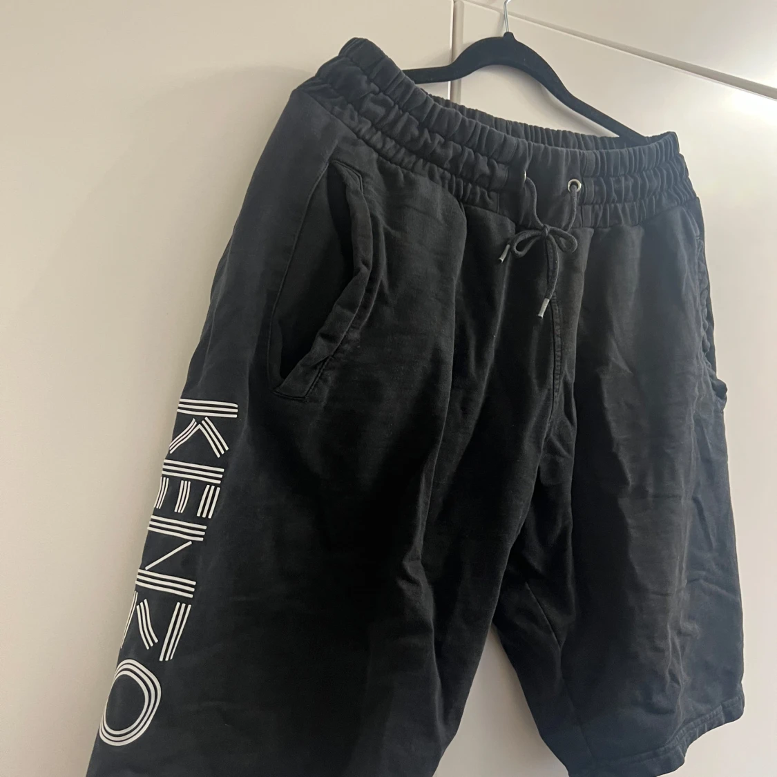 Snygga svarta shorts från Kenzo med elastisk midja och dragsko. Shortsen har två sidofickor och en stor Kenzo-logga längs benet. Perfekta för en avslappnad stil.