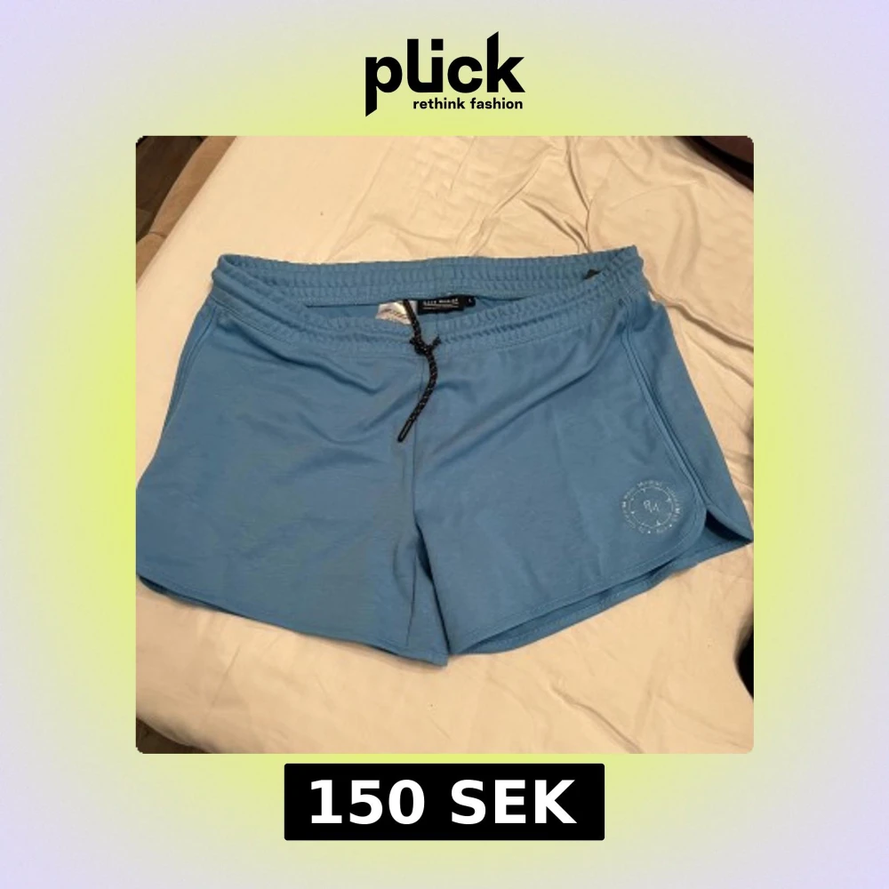 Snygga ljusblå shorts från RVLT med elastisk midja och svart snörning. Mjukt material och diskret logga tryckt på vänster ben. Perfekta för sommardagar eller träning.