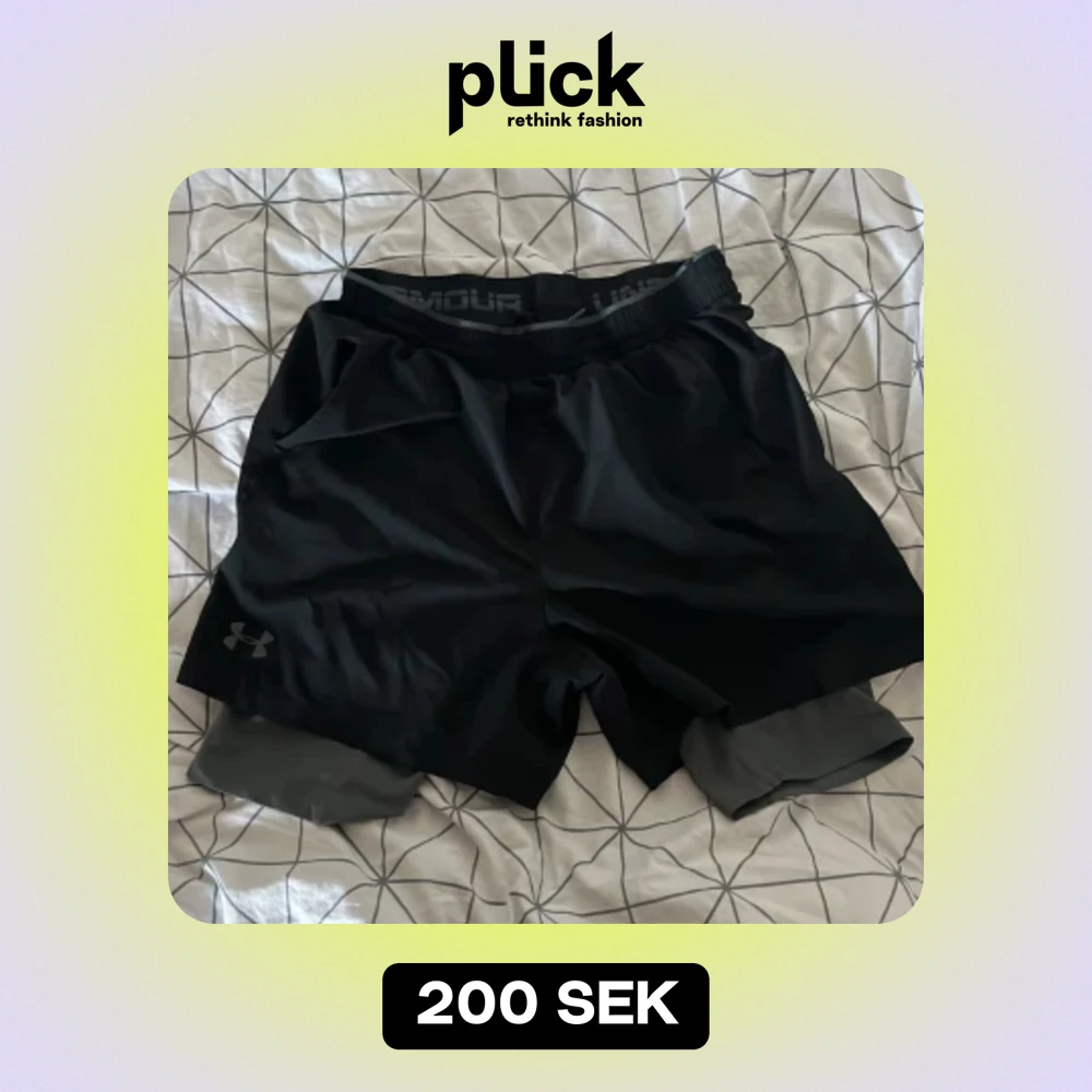 Säljer ett par svarta träningsshorts från Under Armour. De är i storlek L och har en loose passform. Shortsen är gjorda av ett lätt och bekvämt material med HeatGear-teknologi, perfekt för intensiva träningspass. De har en elastisk midja och en diskret logga på benet.