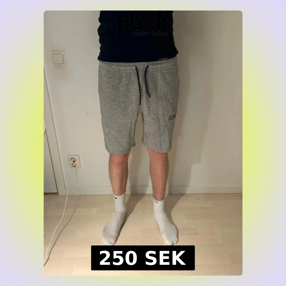 Grå mjukisshorts från RM med svart snörning i midjan och diskret logga på vänster ben. Shortsen har normal passform, sidofickor och är tillverkade i mjukt bomullsmaterial. Perfekta för chill eller träning, riktigt sköna och stilrena.