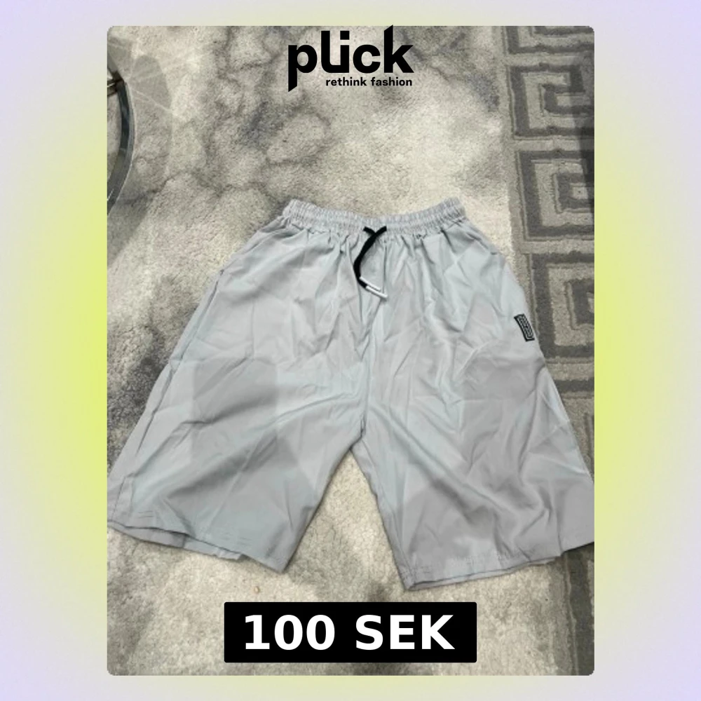 Säljer ett par gråa shorts från Represent med loose passform och elastisk midja. De har svart snörning framtill och är tillverkade i ett lätt syntetmaterial som passar perfekt för varma dagar. Enkla och stilrena med en diskret logotyp på sidan.