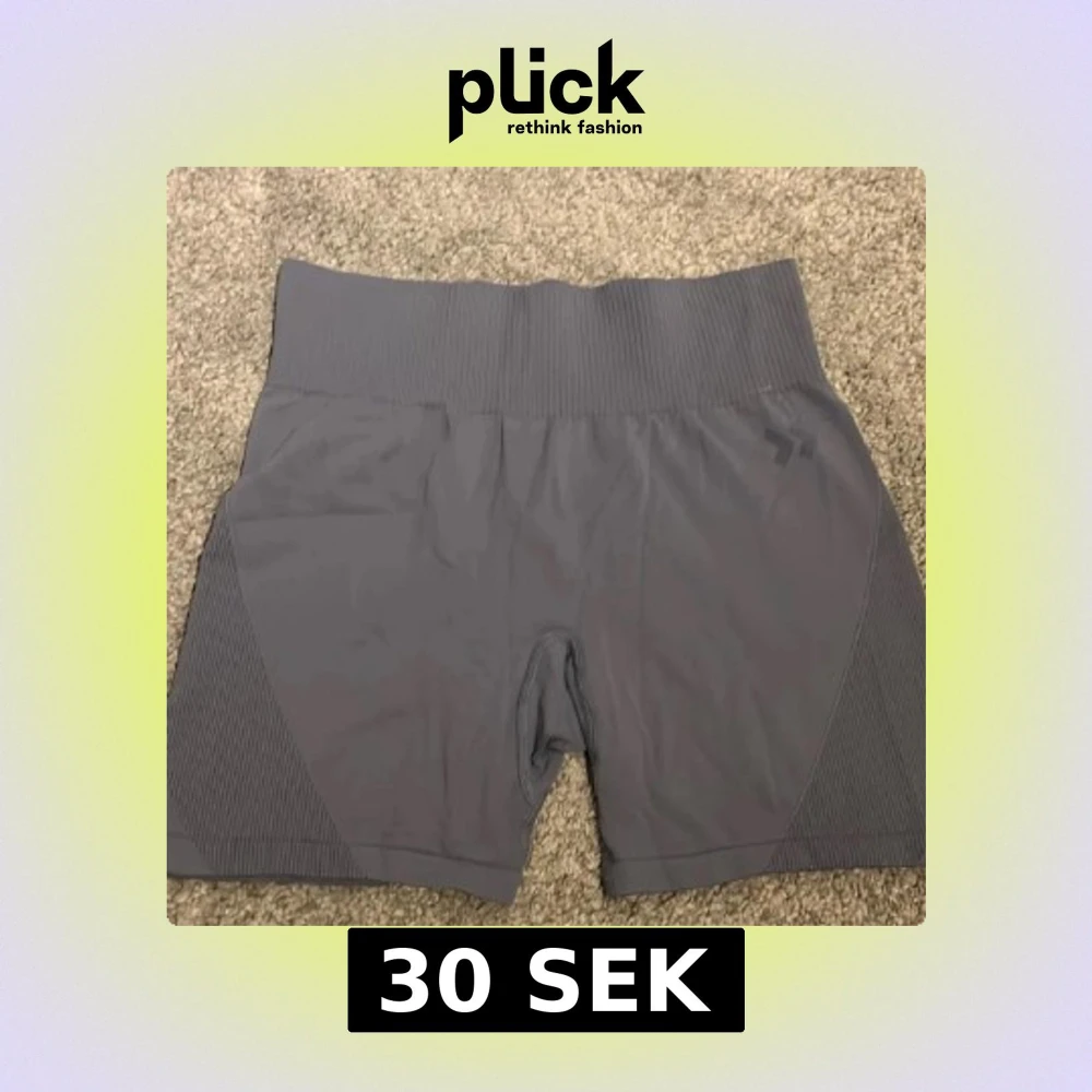 Snygga grå träningsshorts med hög midja och ribbade detaljer på sidorna. Perfekta för gymmet eller löprundan. De har en tight passform som ger bra stöd under träningen.