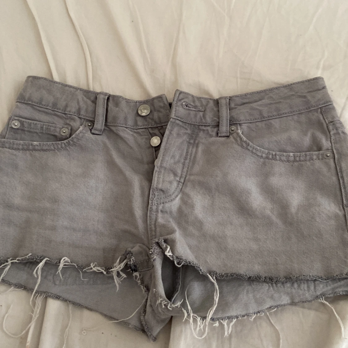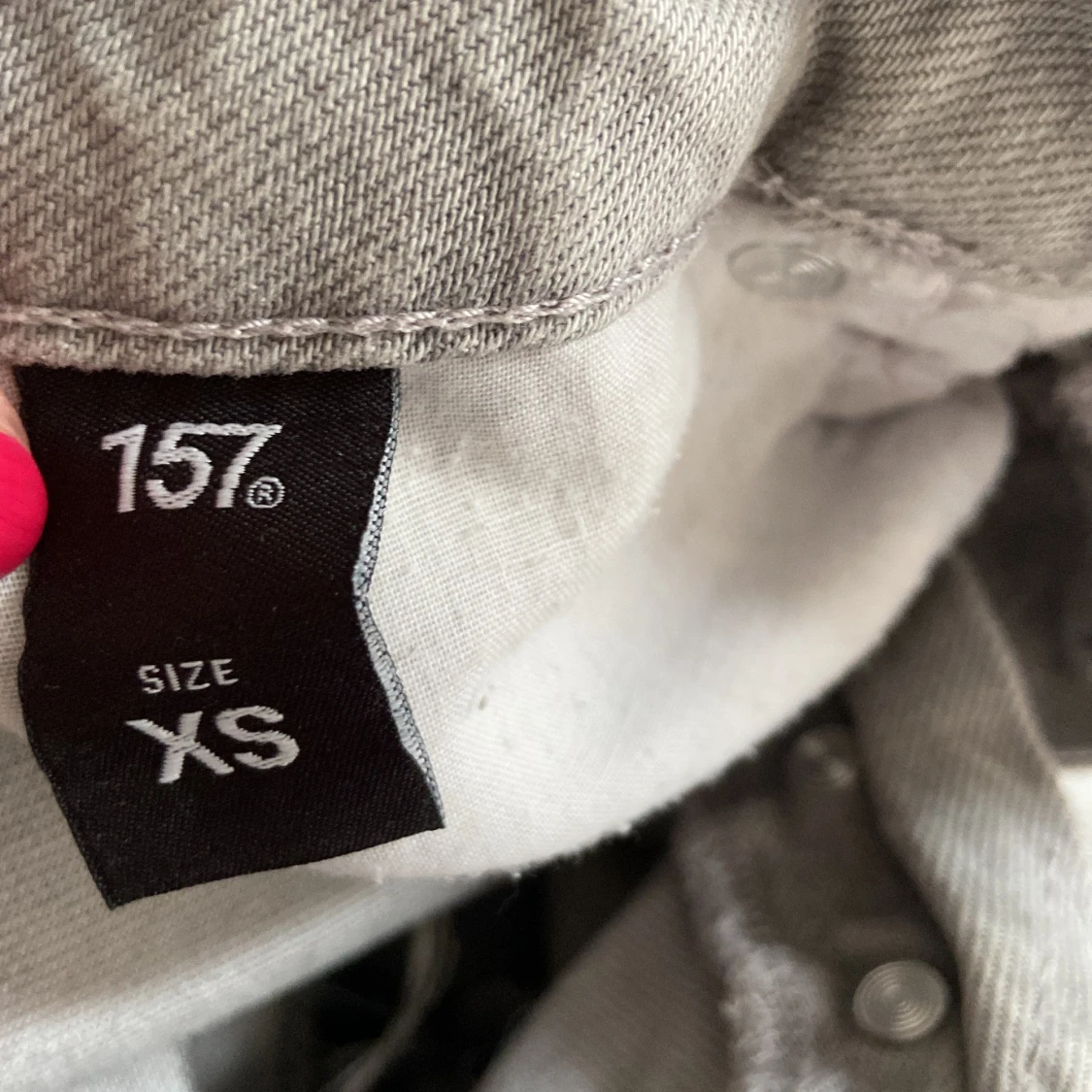 Gråa jeansshorts från 157 i storlek XS. De är lågmidjade , fransiga kanter och klassisk femficksdesign. Perfekta för en chill sommarlook med avslappnad vibe. Bälteshällor och dubbla knappar framtill ger extra detaljer.